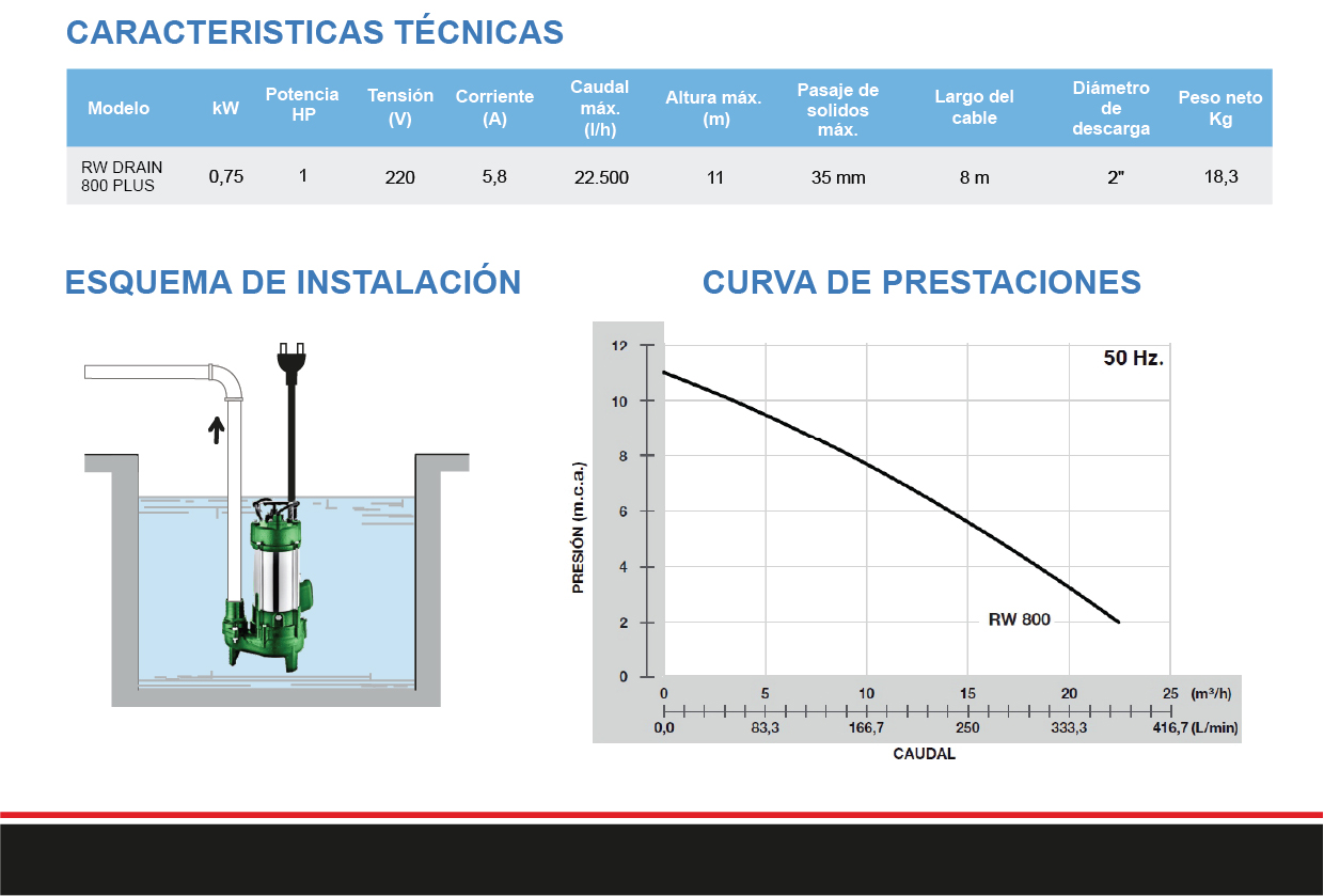 RW 800 PLUS: Solución ideal para el tratamiento de aguas residuales, drenaje de inundaciones y riego eficiente.