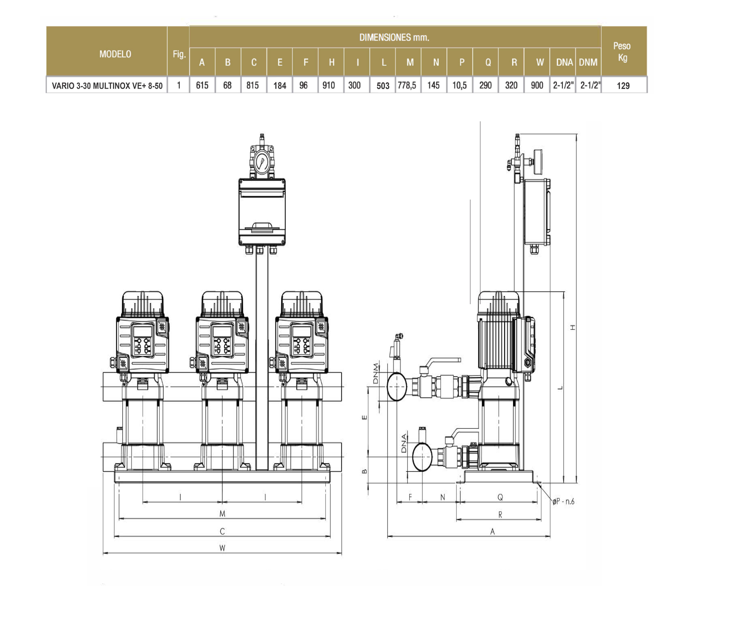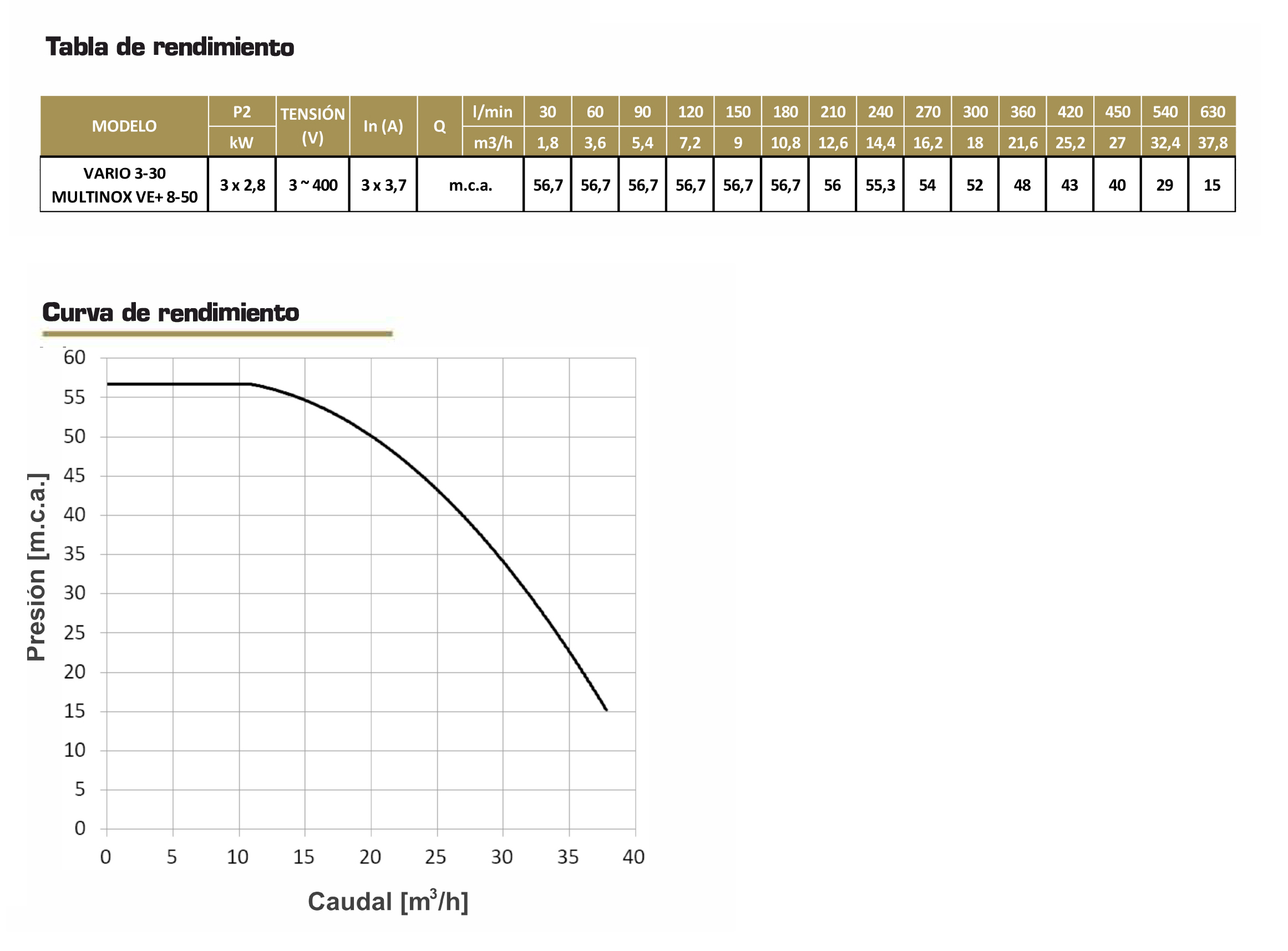 El VARIO 3 es un dispositivo electrónico que puede variar la frecuencia de la bomba eléctrica. Integrado directamente en el motor, es posible ajustar la velocidad para que el usuario mantenga siempre la misma presión al cambiar la demanda de agua. Cuando la presión del sistema car por debajo del umbral establecido, el módulo inicia la primera bomba del grupo para restablecer la presión del punto de ajuste; la velocidad de rotación de la bomba varía de acuerdo con la demanda de agua, por lo que a mayor demanda tendrá una mayor velocidad hasta alcanzar el máximo establecimiento; luego, si la planta está realizando un mayor rendimiento, el módulo iniciará la segunda y luego la tercera bomba para mantener estable la presión.